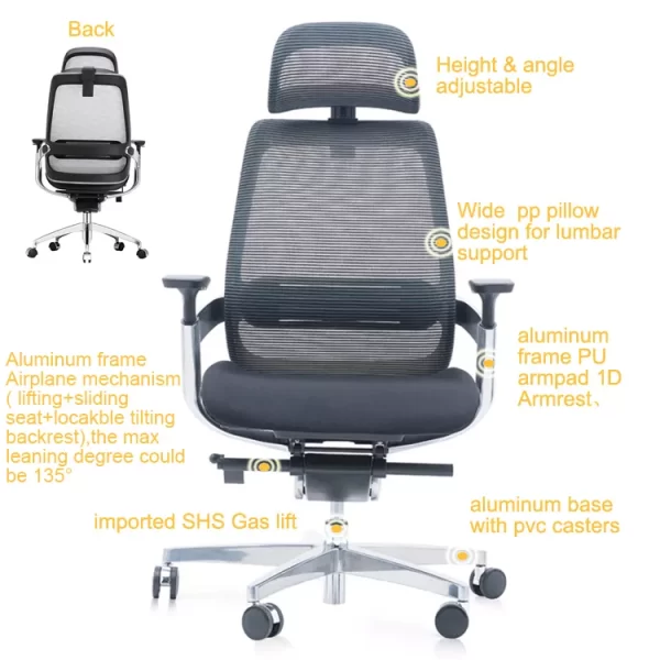 – Tilt Tension 135 Degree With Five Locks Position