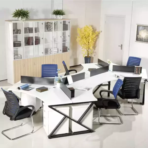 Our durable 120 degree workstation furniture is made with high quality steel, high quality Wood panel, durable frame and overall appearance. We guaranteed our costumer’s satisfaction with high quality products, modern and stylist products. As a result, we guarantee our customers’ satisfaction with high-quality products, modern, and stylish products. This beautiful desk can be used in a Home Office, Office Building, and shared office. This dual desk set is for a 3 to 6-person modular computer cubicle and an office workstation desk.